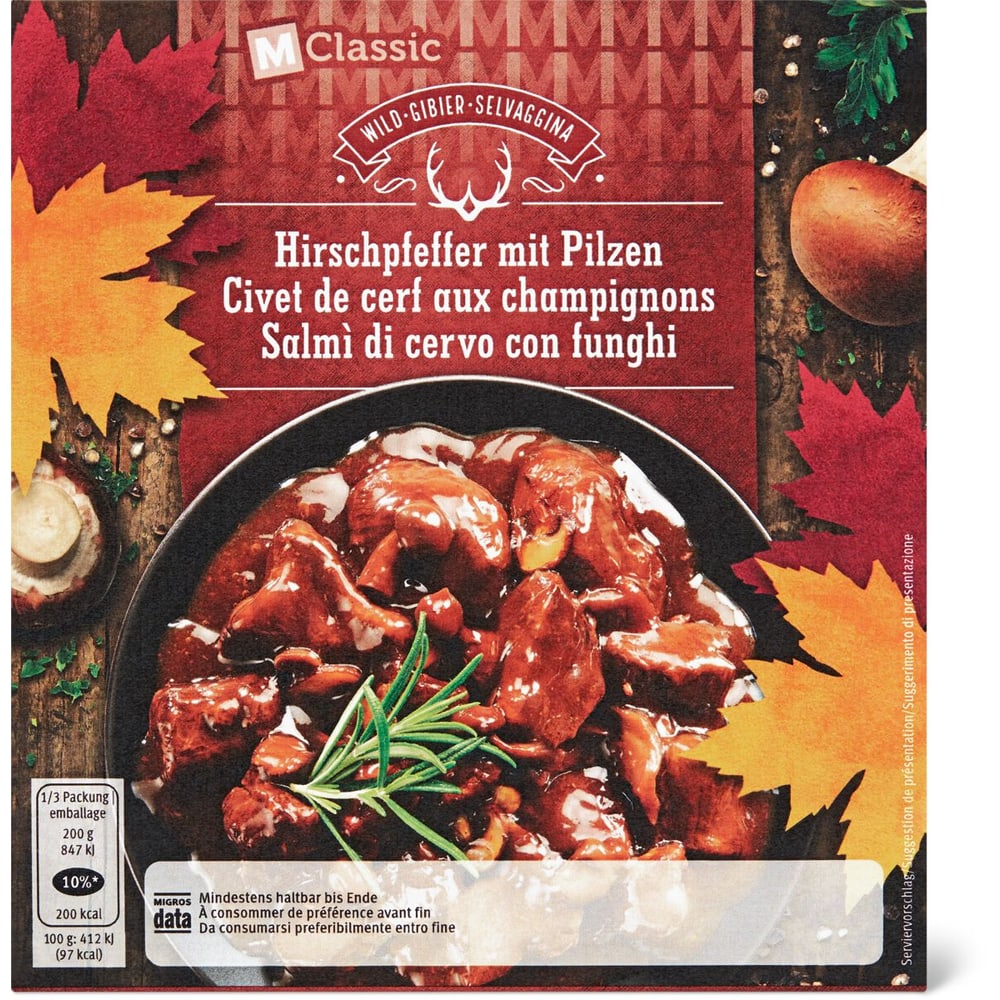 MClassic Wild / Gibier · Civet de cerf aux champignons · cuit • Migros