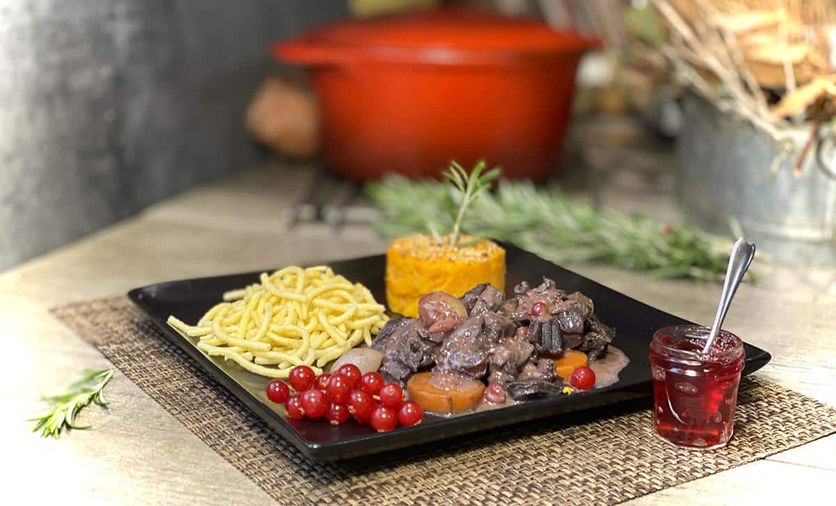 Recette Civet de cerf à la sauce aux airelles et genièvre