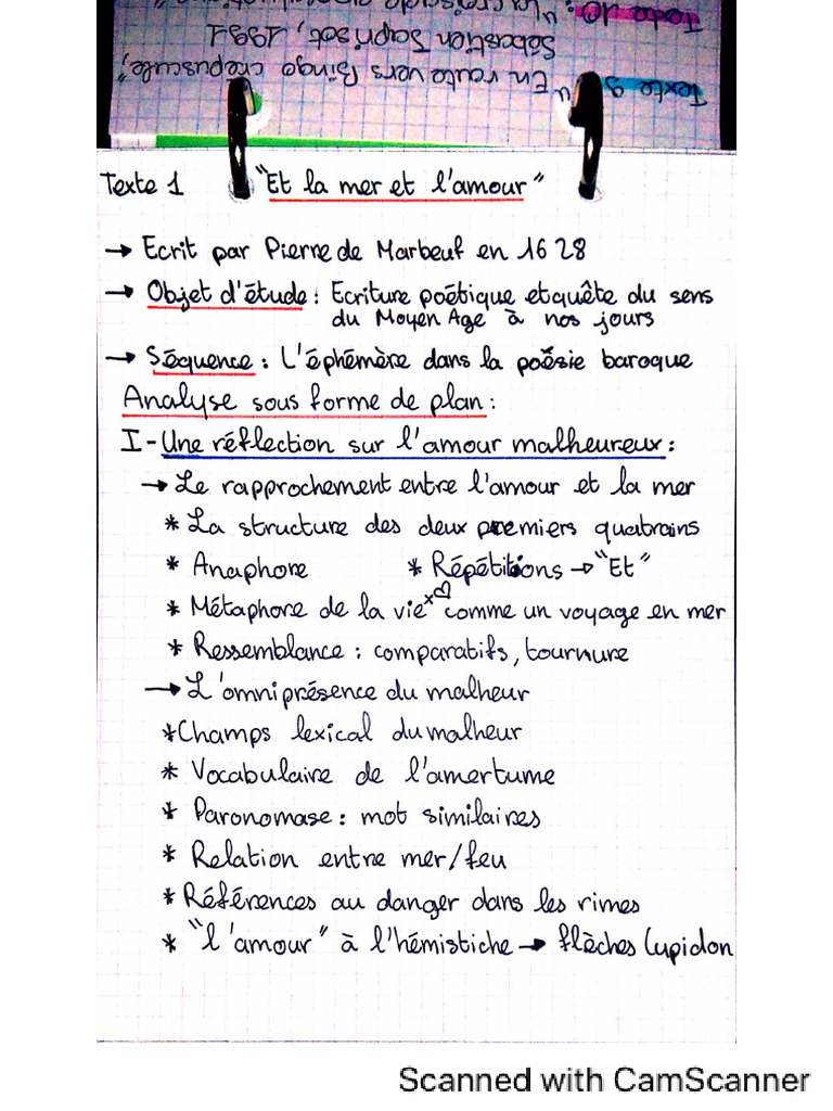 Le poème « Et la mer et l'amour » est paru en 1628. Il est extrait de Recueil des vers. C'est un sonnet baroque. Le poète développe le thème de l'amour malheureux en y associant le thème de l'eau. Problématique : 1er quatrain : Dans le 1er vers, le polysyndète met en valeur la métaphore entre la « mer » et l' « amour ».