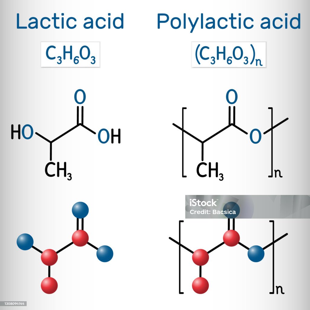 Acide Lactique Et Molécule Dacide Polylactique Monomère Et Polymère Polylactide Pla Bioplastique