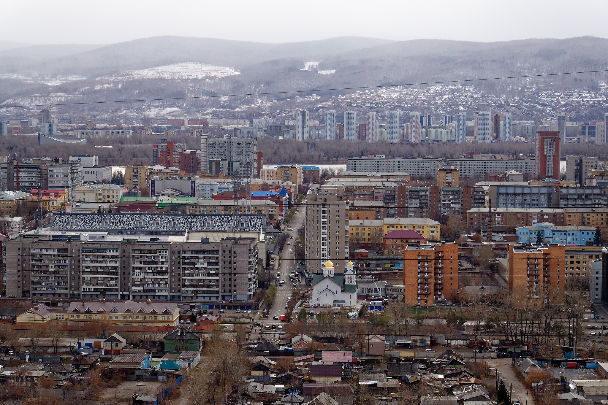 Krasnoyarsk is a city in Krasnoyarsk Krai, Russia. It is known for its beautiful nature nearby. However, the city sits in a mountainous basin and, when the wind isn't blowing, dangerous benzopyrene emissions from its aluminum smelter and power station result in black smog over the city. Map. Directions.