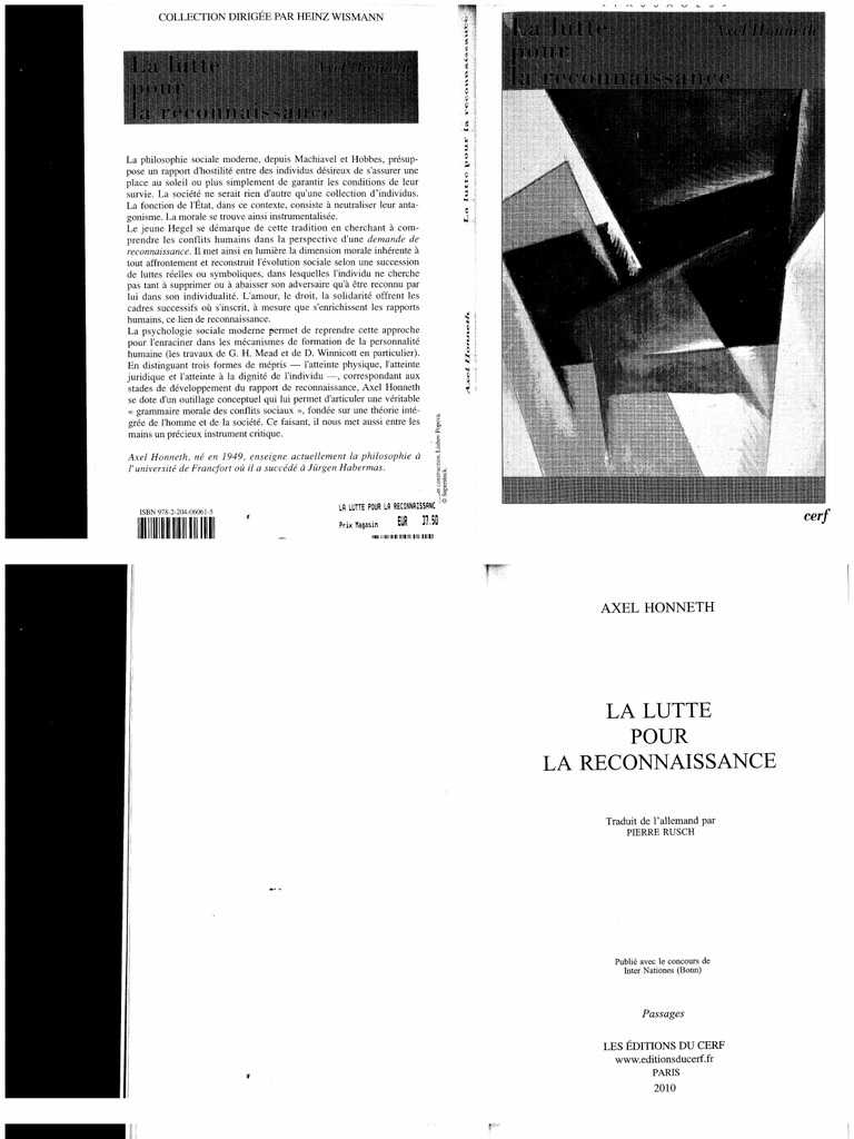 Books. La lutte pour la reconnaissance. Axel Honneth. Gallimard, 2013 - Group identity - 350 pages. Axel Honneth est aujourd'hui, au niveau international, le représentant de la troisième génération de l'Ecole de Francfort. Il en a maintenu le cap de la critique, celle notamment de la philosophie sociale moderne qui, depuis Machiavel et.