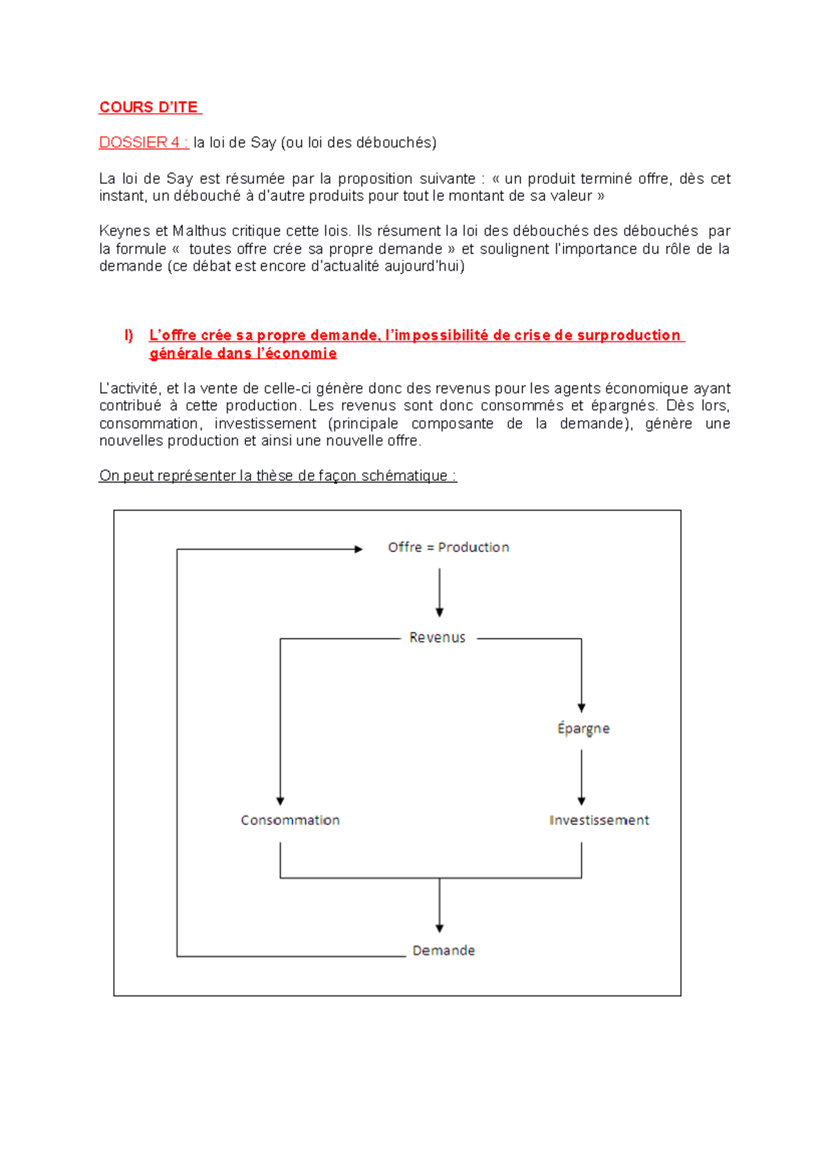 ITE Dossier4 ITE CHAP 4 COURS D’ITE DOSSIER 4 la loi de Say (ou loi des débouchés) La
