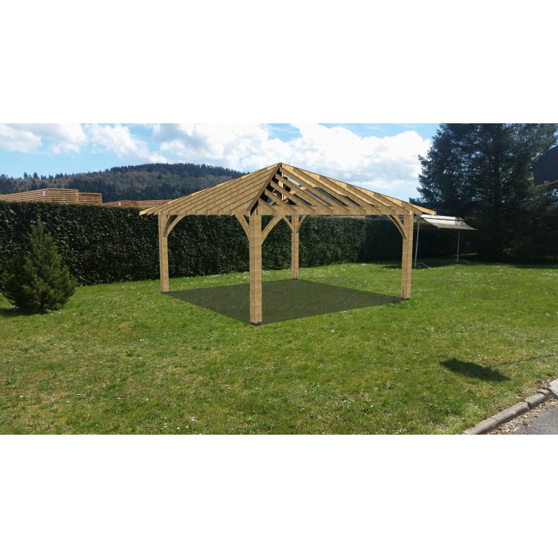 Modèle : CARBET BOIS 3x3 AVEC TOITURE. Dimension de l'abri (m) hors tout : 3,85 x 3,85 x 3,53. Surface toiture : 17,5m². Matériau : Pin classe 4. Offrez-vous un espace intime en pleine nature avec cette gloriette bois ! Sa structure traditionnelle, rappelant le charme des Antilles, apportera de l'exotisme à votre jardin.