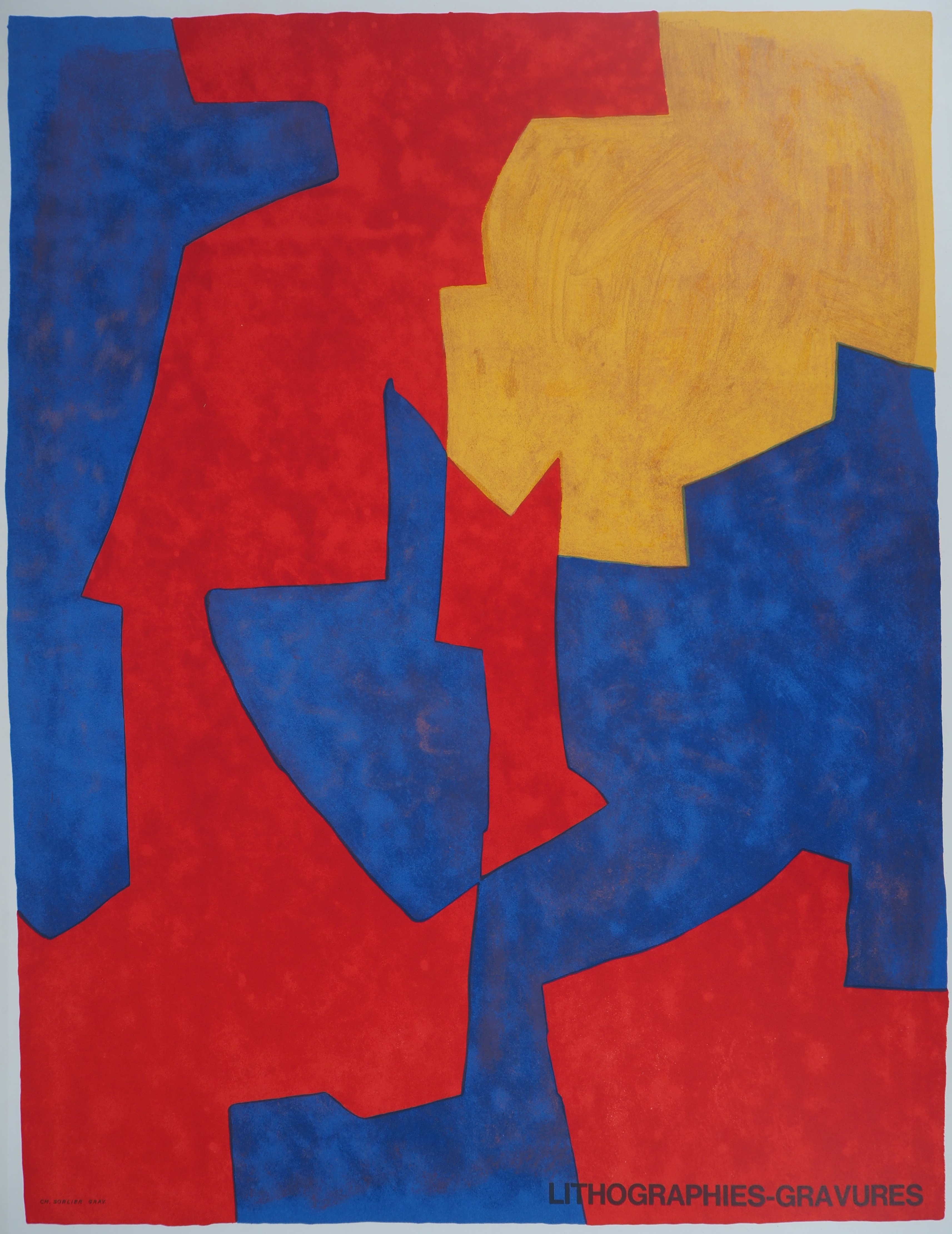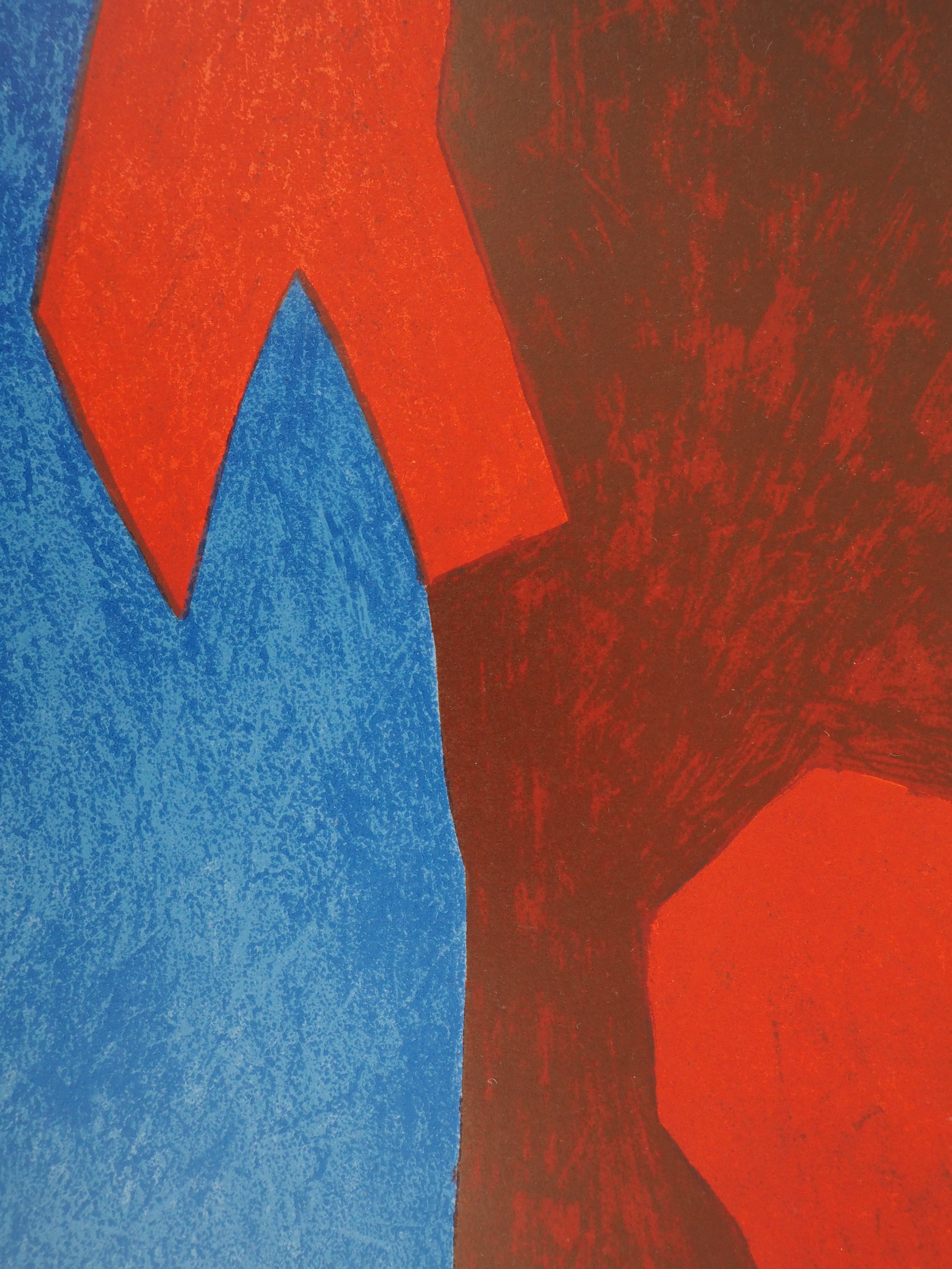 Serge POLIAKOFF Composition bleue et rouge, 1968 Lithographie originale Art Moderne Plazzart