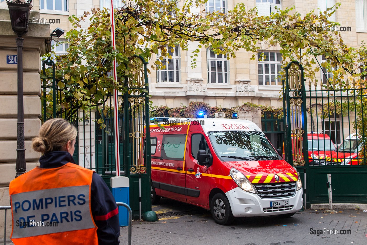 photo de DEPART EN INTERVENTION D'UNE AMBULANCE, CASERNE DE SAPEURSPOMPIERS DE PARIS, RUE