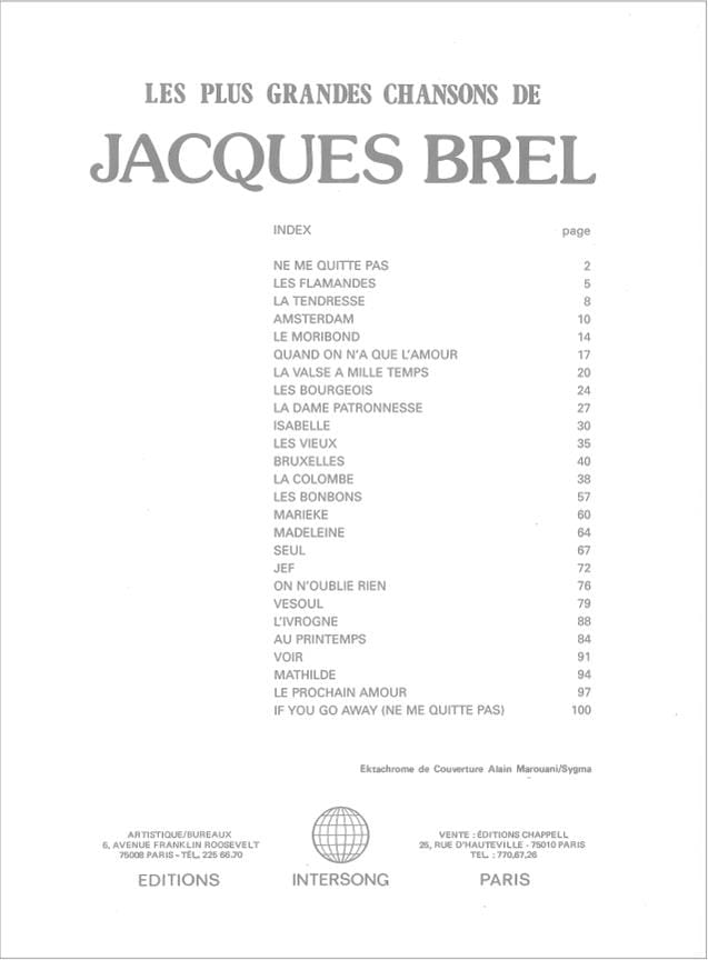 PARTITION de Jacques BREL LES VIEUX, 1964