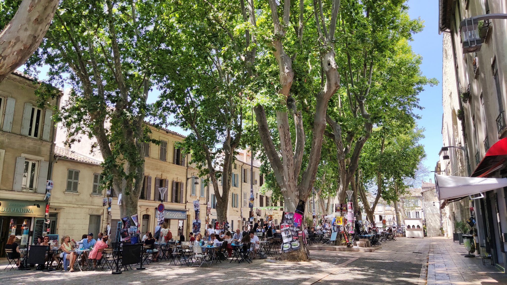 Plutôt coquette, la place Crillon, où se trouve l'ancienne Comédie, 1er théâtre d'Avignon, nous accueille dans une ambiance chic et décontractée. Aux abords de la place où les avignonnais aiment à passer leur soirée pour un afterwork ou une soirée endiablée.