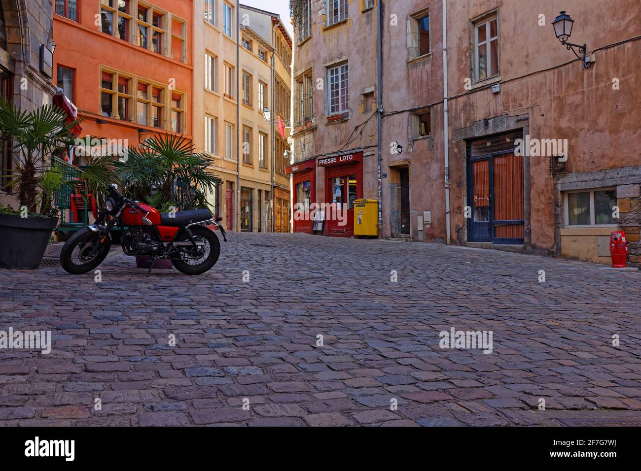 LYON, FRANCE, April 6, 2021 Place de la Trinité. The square, fully paved and surrounded by old
