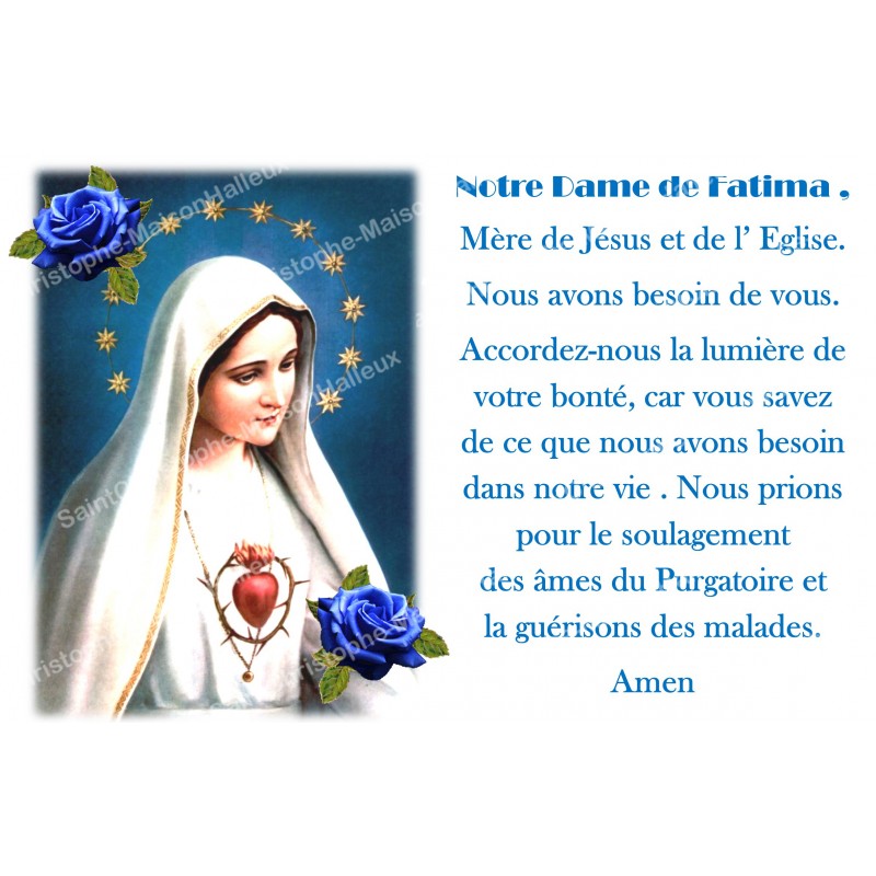 Prière à Notre-Dame de Fatima Notre-Dame de Fatima. Mère de Jésus et de l'Église. nous avons besoin de Vous. Accordez-nous la lumière qui rayonne de Votre Bonté, le réconfort qui émane de