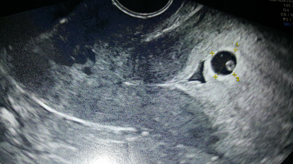 On 31207, showing a single intrauterine gestational sac of 8.4 mm... Download Scientific Diagram