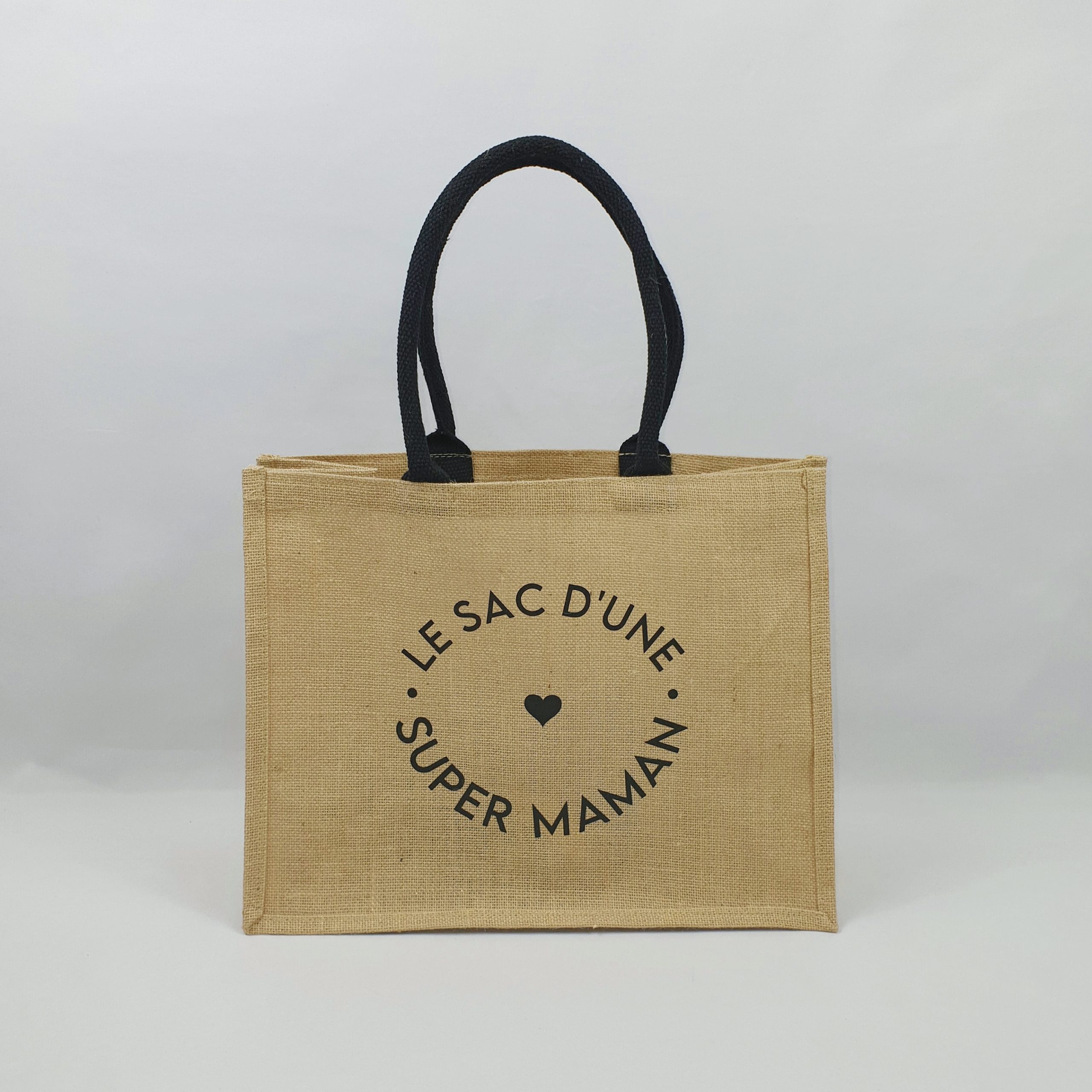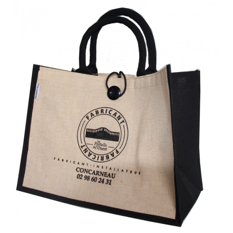 Sac personnalisé en toile de jute avec pochette coton épais.