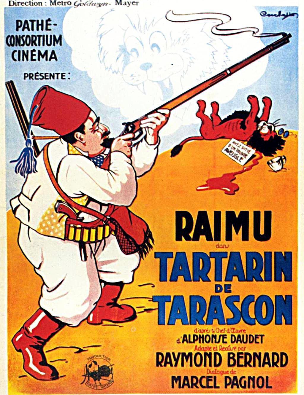 Tartarin de Tarascon: Directed by Raymond Bernard. With Raimu, Fernand Charpin, Sinoël, Paul Ollivier. Tartarin is the local hero in the small provincial town of Tarascon. He shows off about imaginary adventures in Africa, where he has never been, as a Lion Hunter, which he is only in his imagination. Even though the locals know he has never been to Africa, they keep hoping he will leave one day.